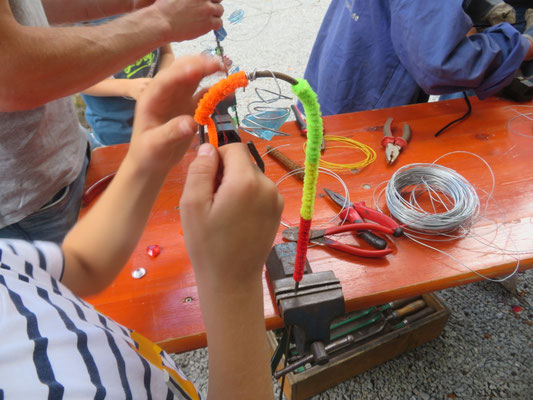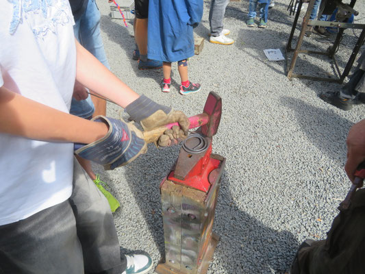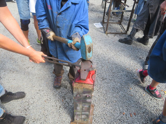 Mit Hammer und Amboss wurde anschließend Schlag um Schlag aus dem Stahlstab einen echter Zauberstab geschmiedet. Alle hatten dabei völlige Freiheit, wie sie ihren Zauberstab umsetzen wollten.