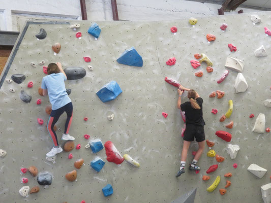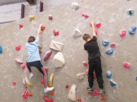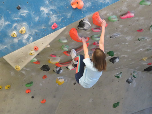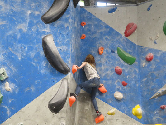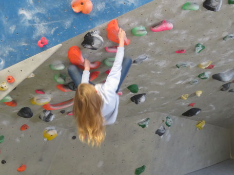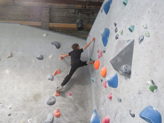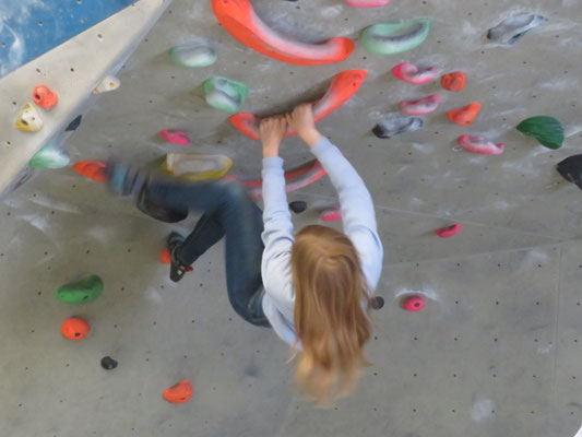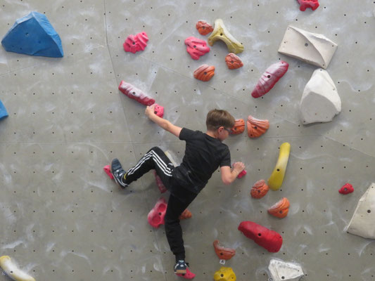 Alles spielt sich in einer Höhe von 3 bis 4,5 m über einer Matte ab. Bouldern ist ein spannendes Spiel gegen die Schwerkraft, was in jedem Alter gespielt werden kann. Zu Beginn lernten die Kinder und Jugendliche sich richtig aufzuwärmen, die grundlegenden Techniken und Bewegungen, Positionen, statische und dynamische Kletterbewegungen.