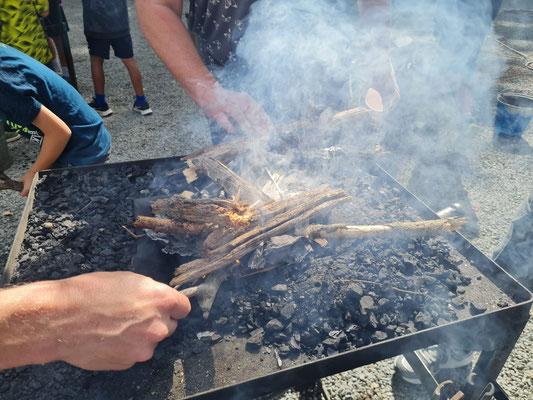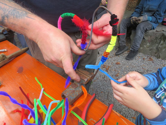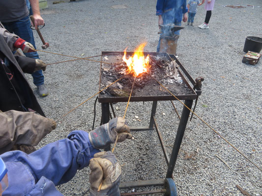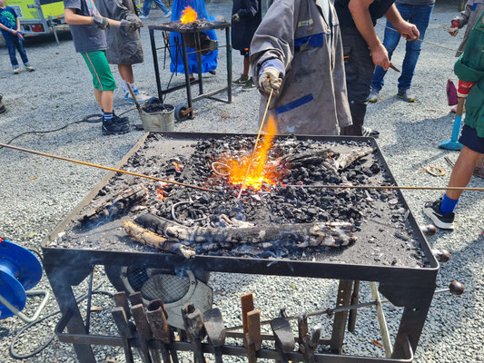Und nun wurde es für alle, egal ob Klein oder Groß, ein unvergesslicher kreativer Nachmittag. Unter der Führung von Joachim Harbut wurde es magisch. Die Zauberschmiede entwickelte nach und nach eine einzigartige Zauberkraft. Gemeinsam wurde zunächst das Schmiedefeuer entfacht.