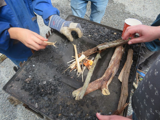 Mit Zaubermänteln und Schutzbrillen ging es gemeinsam ans Feuer. Mit voller Konzentration hielten alle ihre Stäbe ins Feuer und brachten diese zum Glühen.