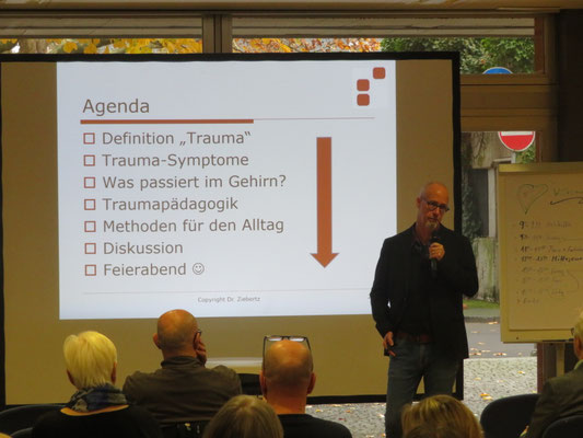 Am 08. November fand im Hüttensaal des Kongresszentrums der Siegerlandhalle die ganztägige Fortbildungsveranstaltung der Pflegekinderhilfe des Kreises Siegen-Wittgenstein und der Universitätsstadt Siegen zum Thema "Pädagogischer Umgang mit traumatisierten Pflegekindern" statt. Mehr als 100 Pflegeeltern und eine Vielzahl an Fachkräften waren gekommen, um den Experten auf diesem Gebiet – Herrn Dr. phil. Thorsten Ziebertz – zu hören und zu erleben.